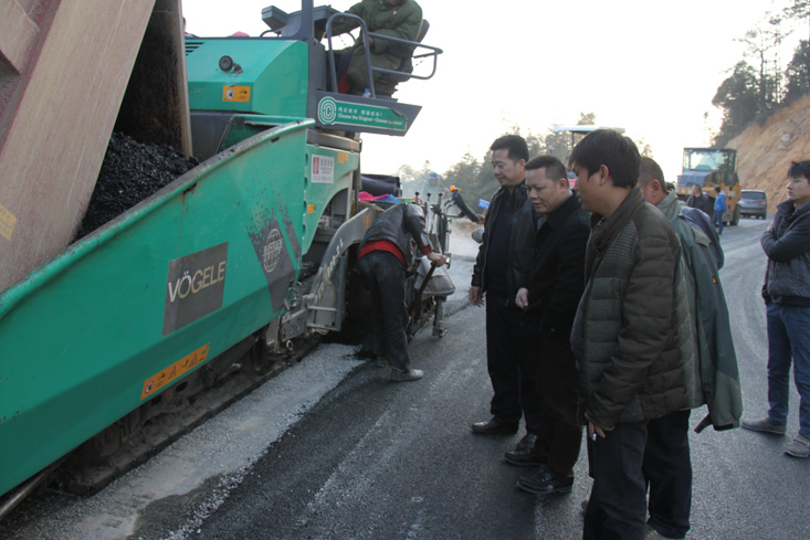 公司領(lǐng)導(dǎo)查看新鋪的瀝青路