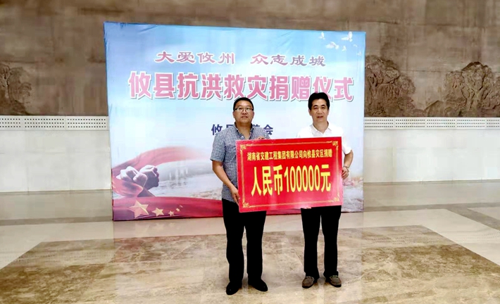 7月12日,董事長謝志方應(yīng)邀出席株洲市民政局組織的株洲市社會(huì)組織抗洪救災(zāi)捐贈(zèng)活動(dòng),并捐贈(zèng)壹拾萬元款項(xiàng)用于抗洪搶險(xiǎn)和災(zāi)后恢復(fù)工作。公司此舉得到民政局領(lǐng)導(dǎo)的高度贊許,湖南省交建工程集團(tuán)有限公司是不忘初心,具有高度社會(huì)責(zé)任感的企業(yè)。