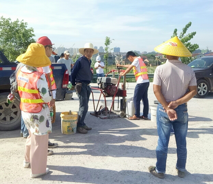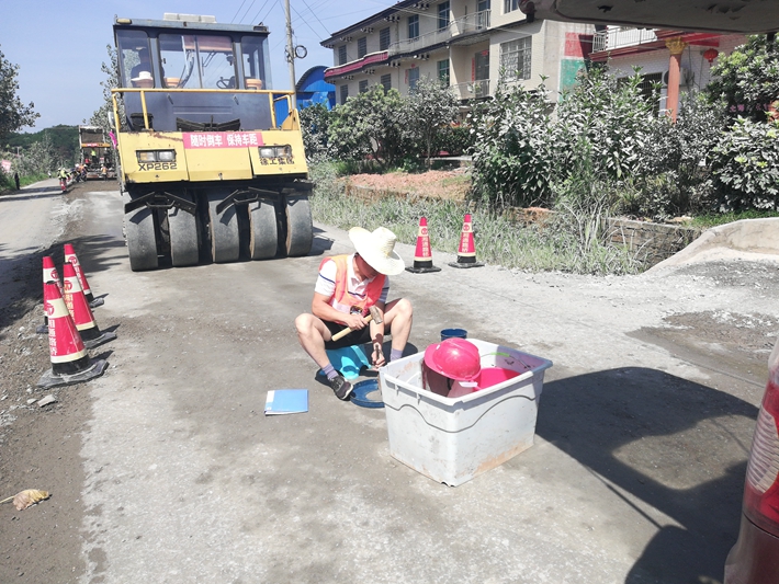 三是檢測環(huán)境惡劣。從6月份開始茶陵地區(qū)進入持續(xù)高溫期,最高溫度達39℃,路面溫度最高達到47℃,施工現場驕陽似火,熱浪滾滾,衣服濕了又干,干了又濕。