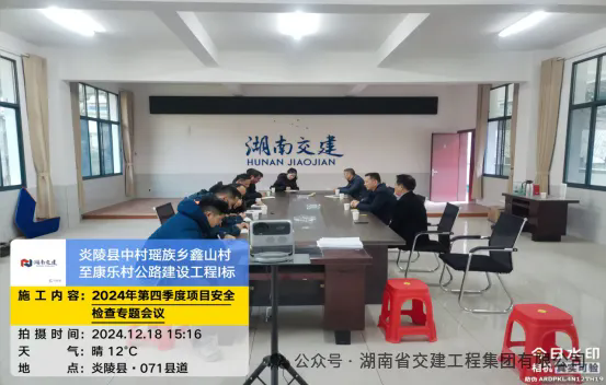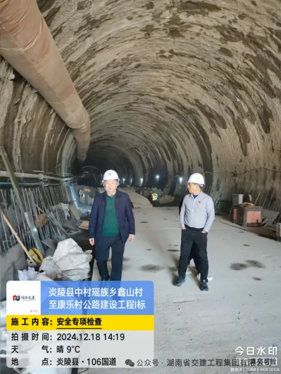 2024年12月18日,由公司監(jiān)事長歐壽康、副總經理(分管安全)郭建文、質量安全部副部長周志勇組成的安全工作小組,對炎陵縣中村瑤族鄉(xiāng)鑫山村至康樂村公路建設工程1標、2024年株洲市普通國省干線公路中修項目(第二標段)等項目進行了安全檢查,重點排查機械設備、隧道施工通風設施、施工交叉作業(yè)、高邊坡施工、交通管制等方面的安全隱患。